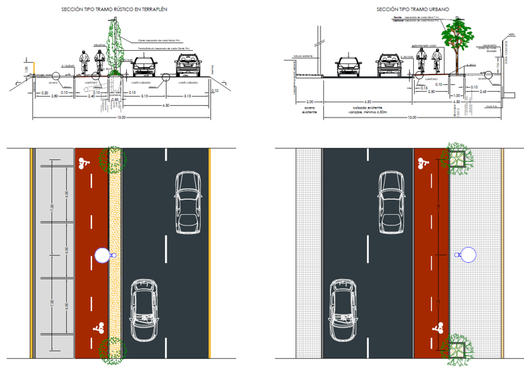 - Las actuaciones se desarrollarán en dos tramos e implican construcción de aceras, habilitación de carriles para bicicletas, incremento de la infraestructura lumínica y creación de zonas de arbolado